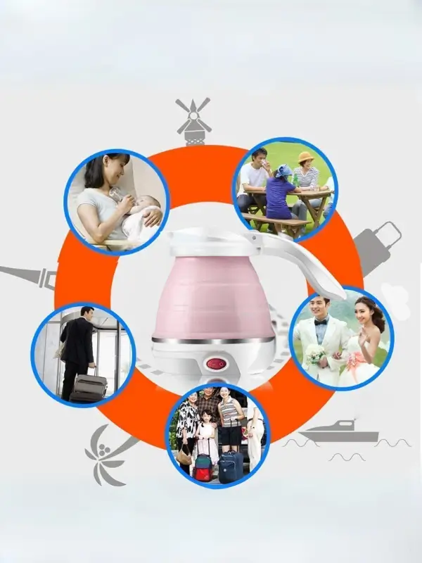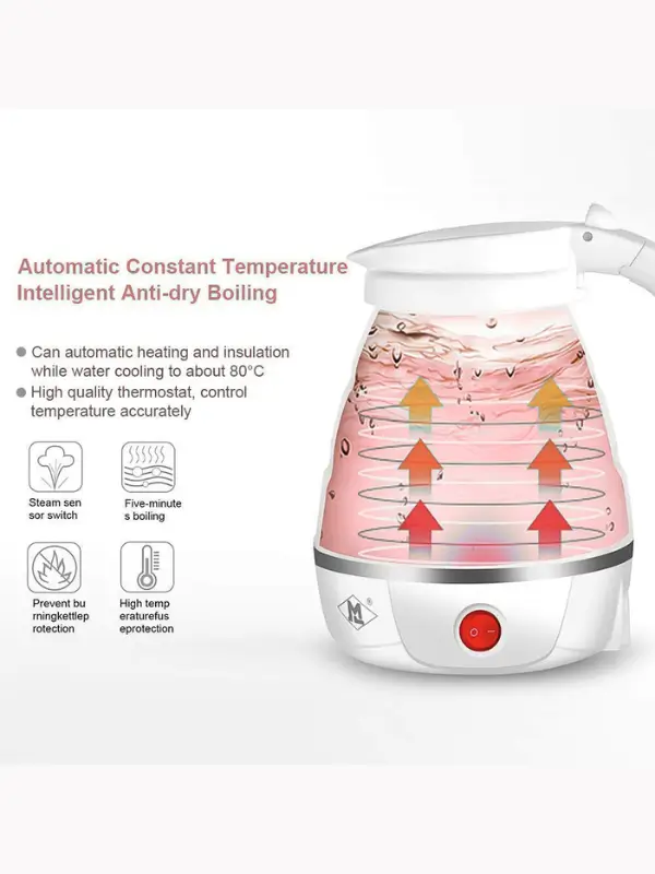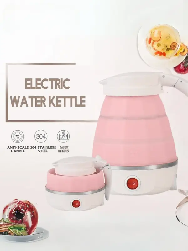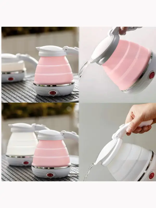 foldable electric kettle, travel kettle, portable kettle, collapsible kettle, evox kettle, pink white kettle, silicone kettle, electric hot water kettle, mini kettle, compact kettle, fast boiling kettle, travel water boiler, hotel kettle, electric tea maker, lightweight kettle, foldable water boiler, electric kettle for travel, small electric kettle, electric kettle for office, safe boiling kettle, kettle with auto shutoff, travel accessory, camping kettle, kitchen gadget, electric appliance