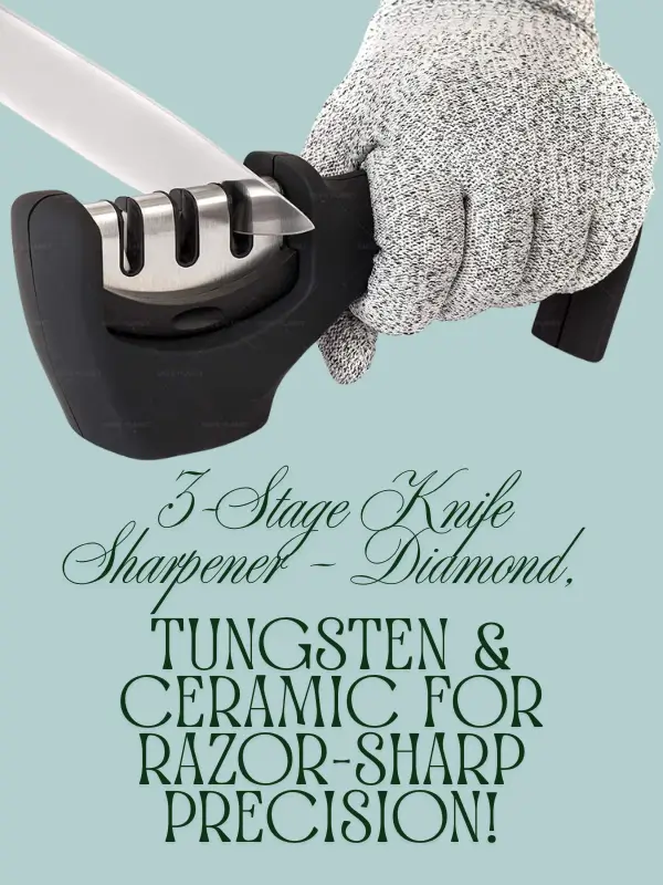 Upgrade your kitchen with the Evox Manual Knife Sharpener, designed to restore razor-sharp precision to your dull knives in just minutes. Featuring a 3-step sharpening system (diamond slot, tungsten carbide, and ceramic polishing), this professional tool ensures your blades are repaired, reshaped, and polished to perfection.