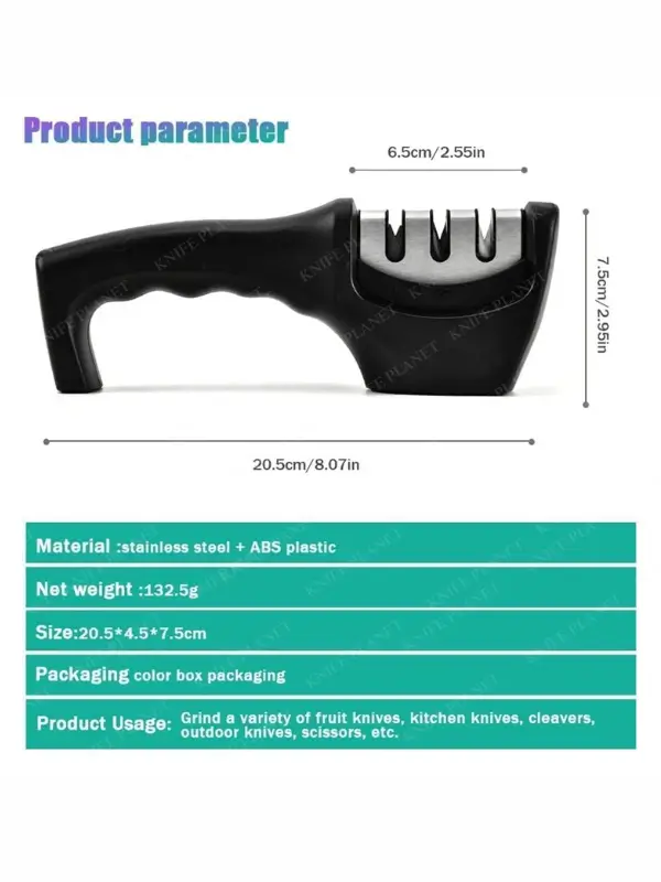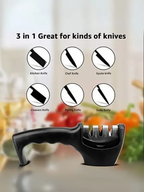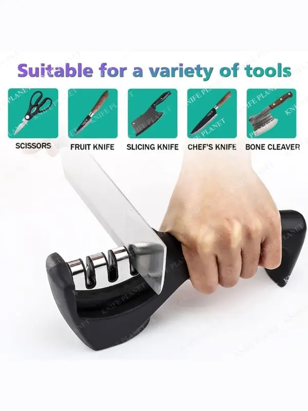 ✅ 3-Step Sharpening System – Repair, sharpen, and polish knives with precision.