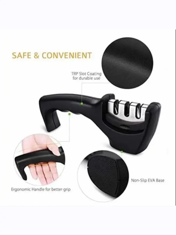 The Evox 3-Step Manual Knife Sharpener quickly repairs, sharpens, and polishes dull blades. Built with stainless steel, tungsten carbide, and ceramic slots, it offers durability, easy cleaning, and a non-slip base for safe, effortless sharpening at home.