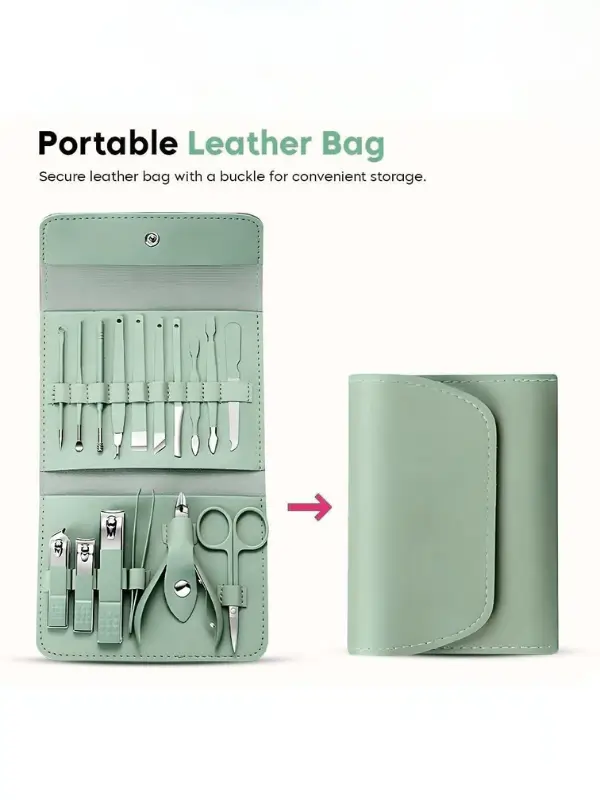 This versatile kit includes everything you need for nail trimming, cuticle care, blackhead removal, eyebrow shaping, and more, making it perfect for both home and travel use. Housed in a luxurious PU leather travel case, the tools stay secure and organized, ready whenever you need them.